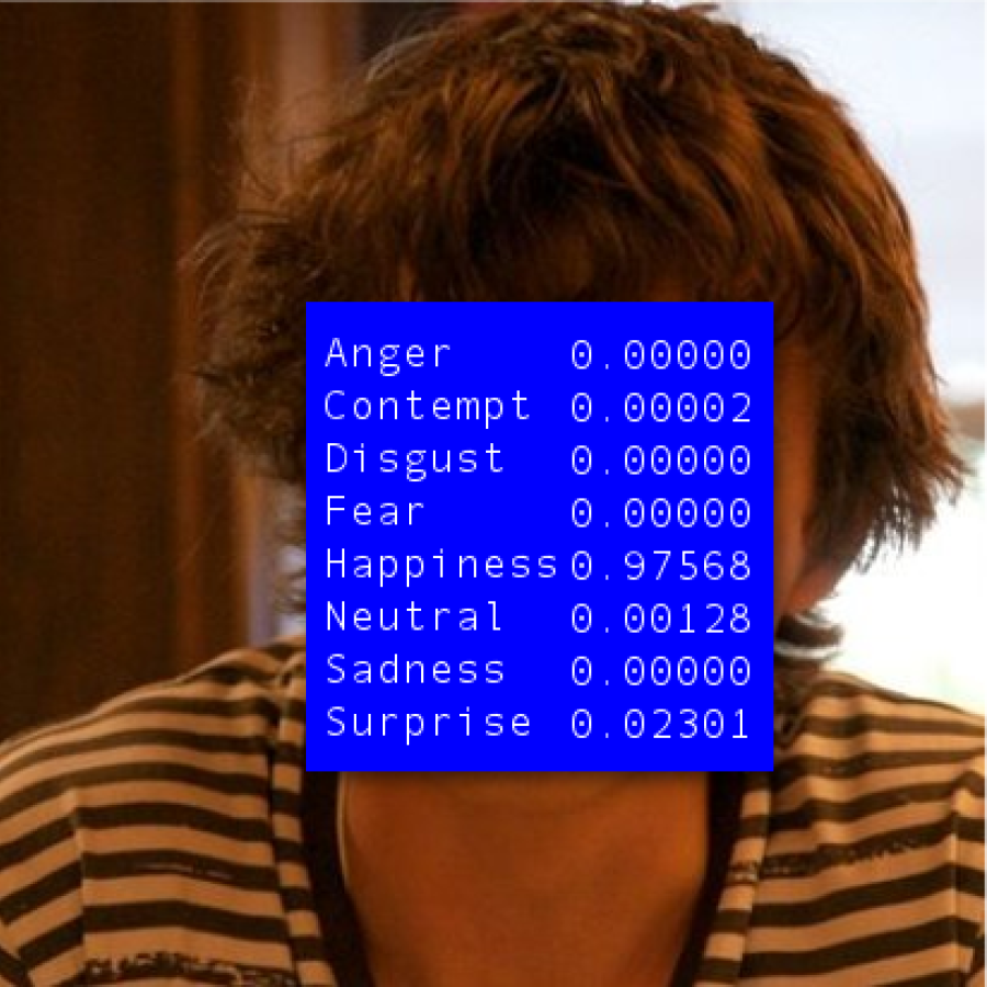 Combining his backgrounds in filmmaking and programming the last works of Ruben van de Ven (NL) revolve around software that derives emotional parameters from facial expressions. He examines this intersection of highly cognitive practices and ambiguous experiences and interrogates the discursive apparatus that is being erected. Currently he is finalising his master of Media Design at the Piet Zwart Institute in Rotterdam on this topic.