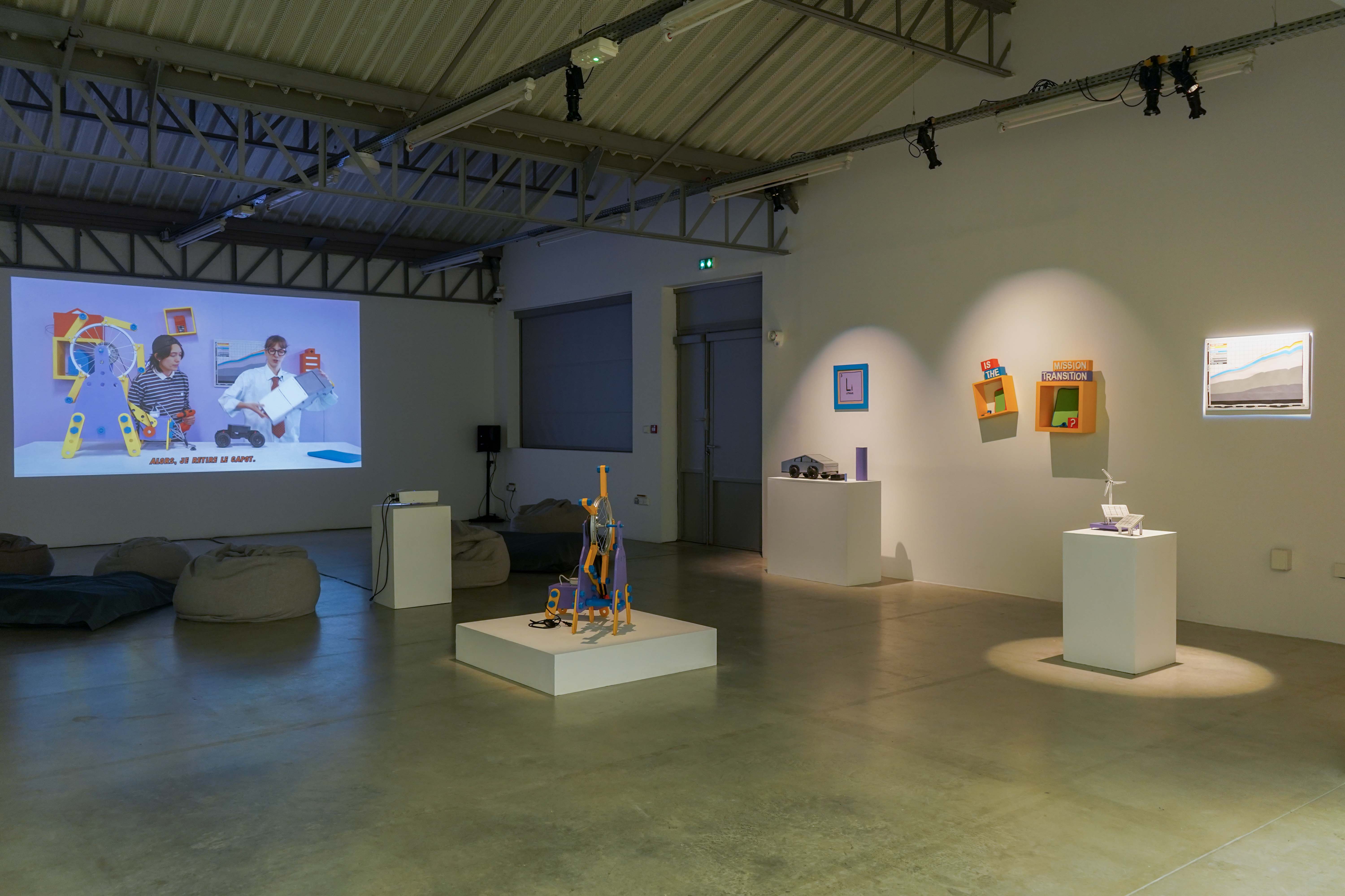 Energy Academy is a video installation tackling the myths surrounding (renewable) energy today. Drawing on the visual and narrative codes of popular science programs for kids, such as Bill Nye the Science Guy or C'est pas sorcier, the video questions the narrative behind the ecological transition.  As a starting point, the video debunks the viral myth of free energy production with perpetual motion machines, serving as a narrative device to address techno-solutionism in the energy sector. The subject of energy is playfully rendered tangible with the help of colourful, hand-made props and wacky sound effects. While making use of humour and satire allows to reveal the inconsistencies in the dominant discourse promoting the energy transition, such as the often misguided use of renewable energy, the fossil fuel and mineral extraction needed to produce the equipment necessary for electrification, and the global rise in energy demand, which makes it impossible to reduce our fossil fuel consumption.