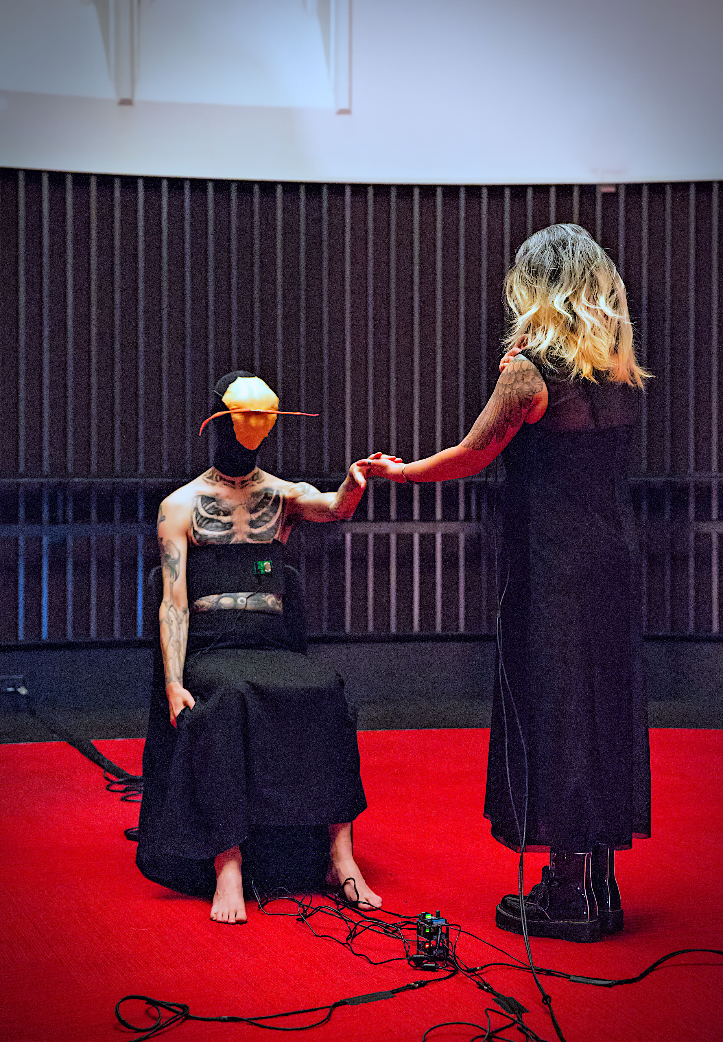 Same-day delivery; just-in-time computing; instagrammable art; attention span; AI assistants. In the global north, life and work have converged around an obsession with immediacy – a techno-fascist paradigm where a rhetoric of speed, optimization, and measurable output flattens affective experience, devalues interpersonal contact, and fuels extractive platforms. Lestes MK1 invites audiences to slow down and immerse themselves in the messy feeling of intimately sensing another body; an experience of intercorporeal vulnerability.