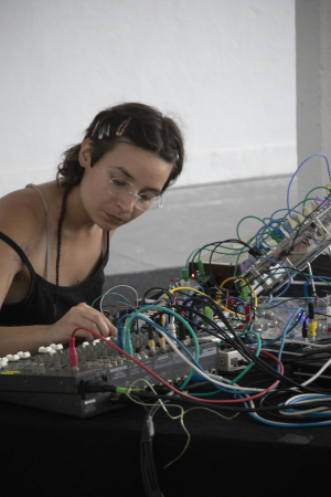 Alongside her musical project, she is developing sound installation processes designed in situ, resonating with the places for which they are conceived. She uses circuits as material and imagines autonomous devices powered. She seeks to integrate drops of synthesized sound into a living space, encouraging the audience to engage in deep listening and inserting narration into the soundscape of the spaces in which she works.